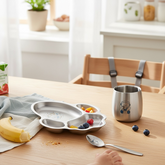 Teddy Starter Mealtime Kit – Non-Toxic Stainless Steel Plate, Cup & Spoon
