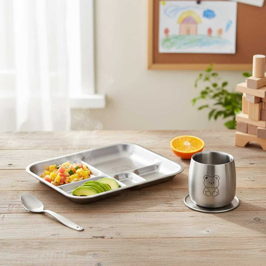 Teddy Starter Mealtime Kit – Non-Toxic Stainless Steel Plate, Cup & Spoon